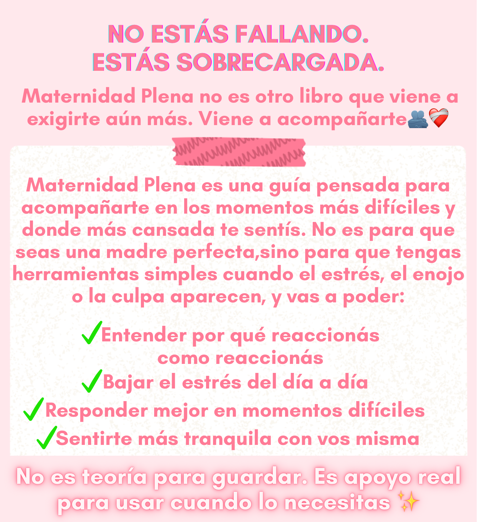 La verdad es que yo venía muy pasada… se me juntaba el laburo, más problemas de mi casa, los chicos etc y gritaba más de lo que quería y después me sentía mal. Empecé con la guía de a poco y me ayudó un MONTÓN, te dice qué hacer cuando estás a punto de explotar, sobre todo el libro de criar sin gritos, y aprendí a manejar los berrinches. AMÉ TODO. En casa estamos más tranquilos y yo también